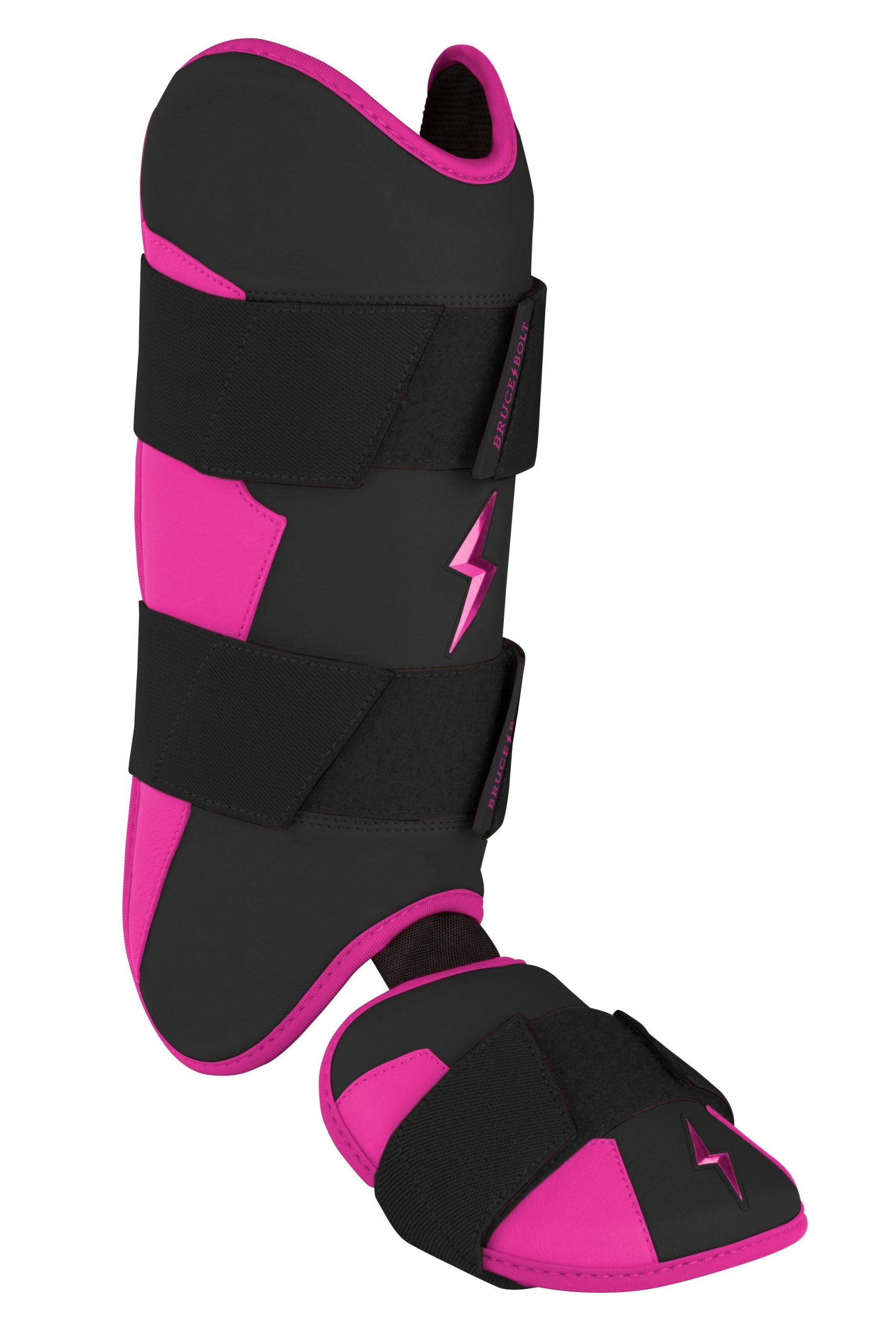 BRUCE BOLT’s PREMIUM PRO Leg & Ankle Guards feature a semi-moldable thermoplastic protective shell with a Cabretta leather outer and Shark Skin inner to keep the guard in place at the plate and while running the bases. 2 wide removable elastic strap locks the Leg guard in place providing maximum protection at the plate.