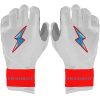 HIGHEST QUALITY. MOST DURABLE BATTING GLOVE IN BASEBALL: Each pair of BRUCE BOLT batting gloves are handmade by skilled craftsmen using only the highest quality 0.9mm Cabretta leather and stitching techniques which makes our gloves buttery soft but more durable than any other glove on the market.