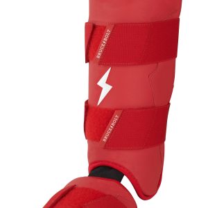 BRUCE BOLT’s PREMIUM PRO Leg & Ankle Guards feature a semi-moldable thermoplastic protective shell with a Cabretta leather outer and Shark Skin inner to keep the guard in place at the plate and while running the bases.? 2 wide removable elastic strap locks the Leg?guard in place providing maximum protection at the plate.