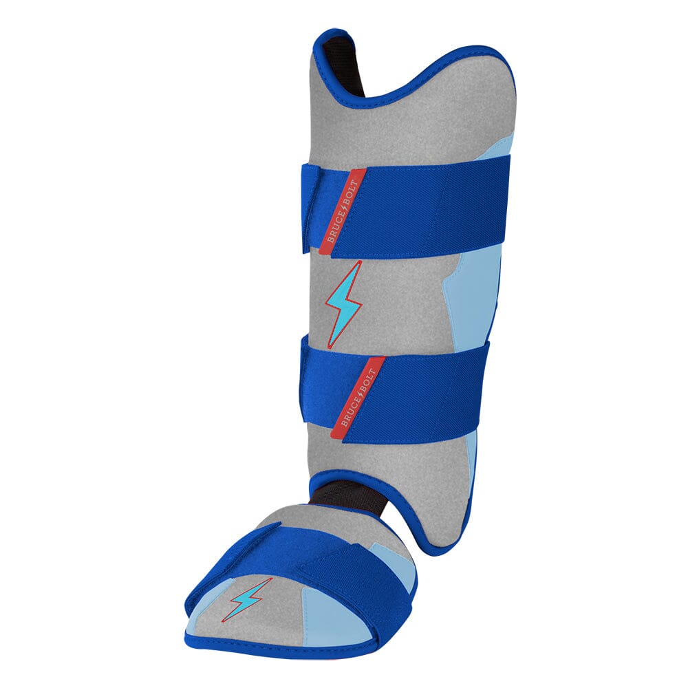 BRUCE BOLT’s PREMIUM PRO Leg & Ankle Guards feature a semi-moldable thermoplastic protective shell with a Cabretta leather outer and Shark Skin inner to keep the guard in place at the plate and while running the bases. 2 wide removable elastic strap locks the Leg guard in place providing maximum protection at the plate.