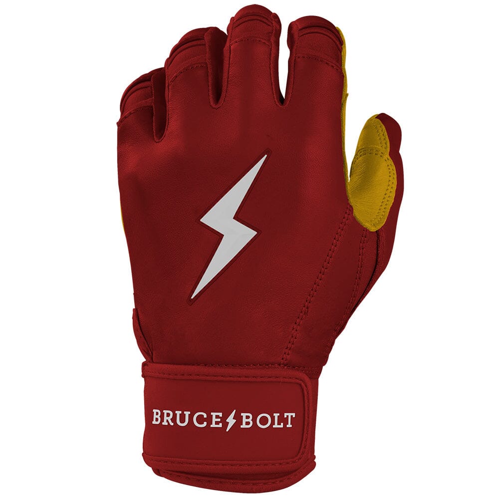 HIGHEST QUALITY. MOST DURABLE BATTING GLOVE IN BASEBALL: Each pair of BRUCE BOLT batting gloves are handmade by skilled craftsmen using only the highest quality 0.9mm Cabretta leather and stitching techniques which makes our gloves buttery soft but more durable than any other glove on the market.