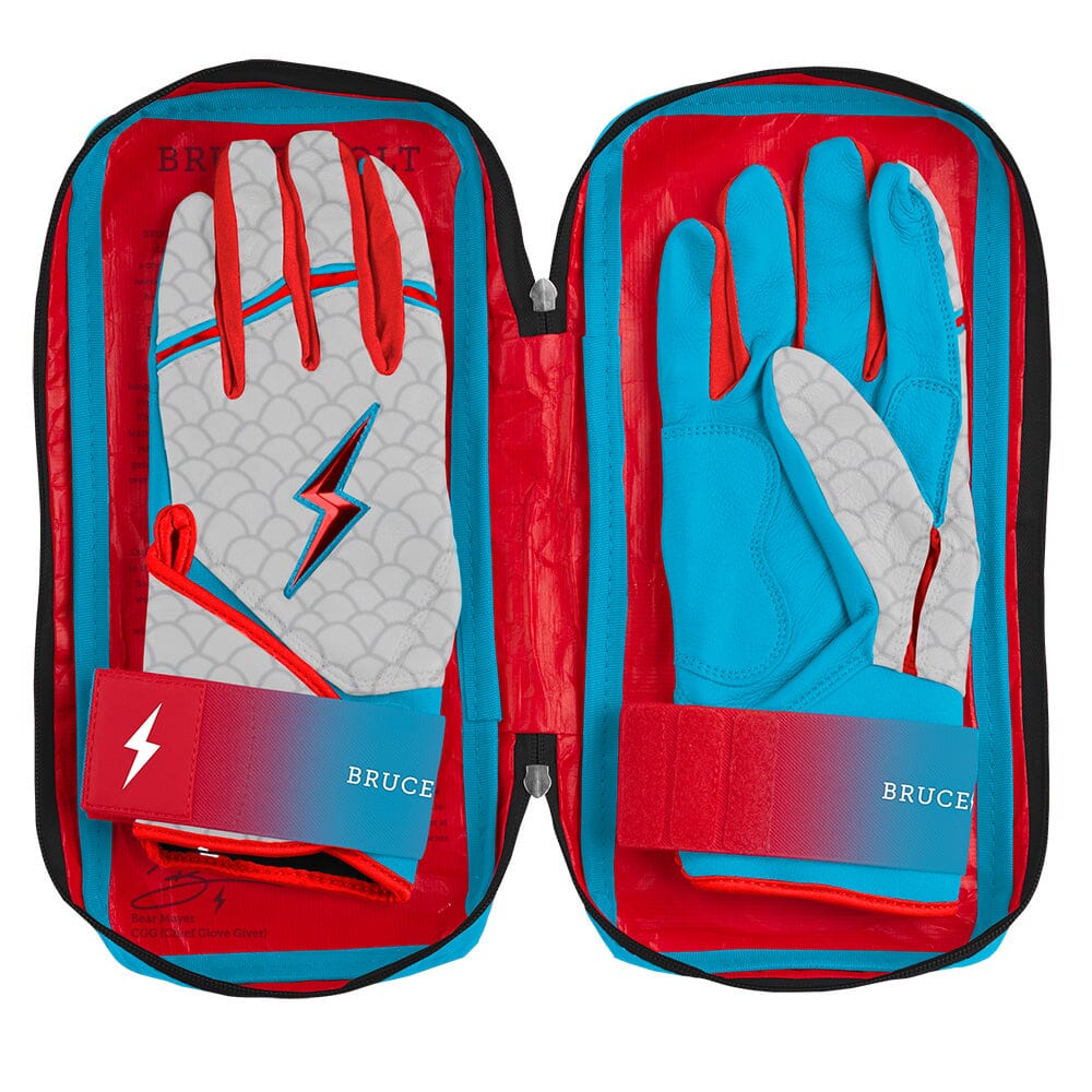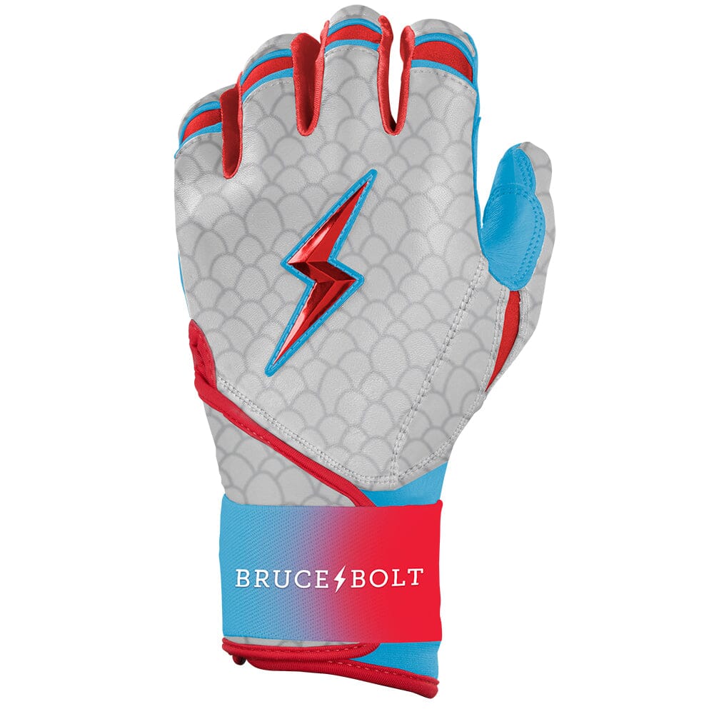 HIGHEST QUALITY. MOST DURABLE BATTING GLOVE IN BASEBALL: Each pair of BRUCE BOLT batting gloves are handmade by skilled craftsmen using only the highest quality 0.9mm Cabretta leather and stitching techniques which makes our gloves buttery soft but more durable than any other glove on the market.