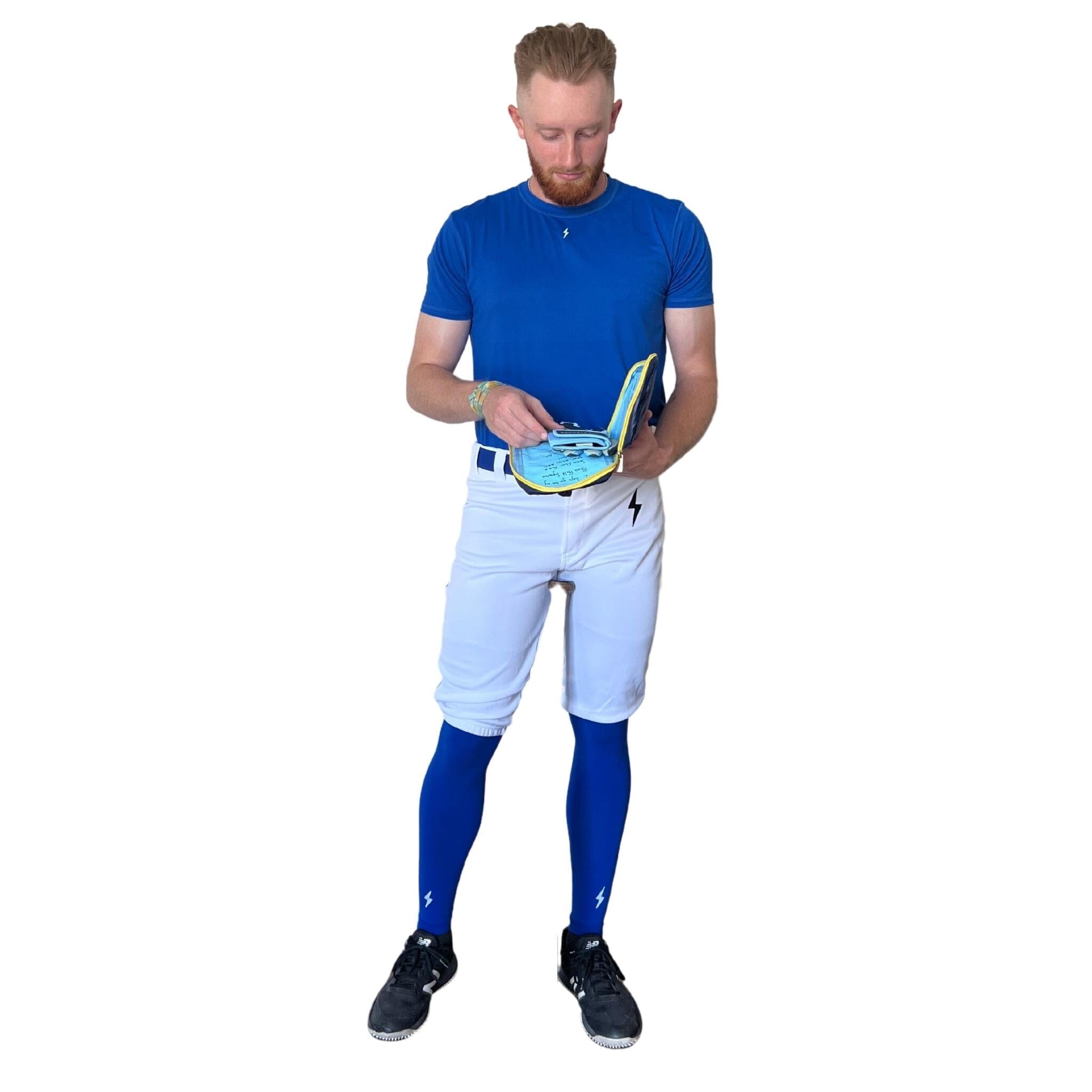 Premium Pro Baseball Short Pant w/ Piping – White/Royal Blue