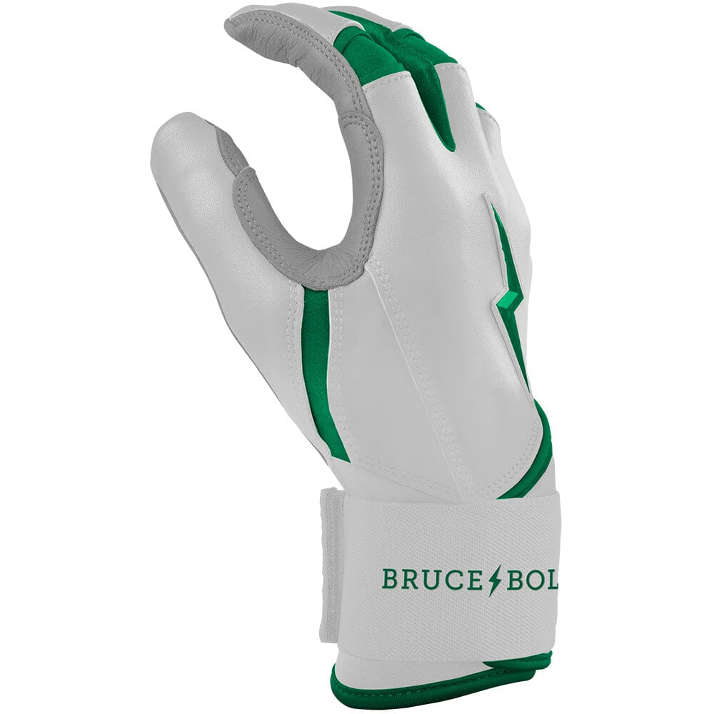 HIGHEST QUALITY. MOST DURABLE BATTING GLOVE IN BASEBALL: Each pair of BRUCE BOLT batting gloves are handmade by skilled craftsmen using only the highest quality 0.9mm Cabretta leather and stitching techniques which makes our gloves buttery soft but more durable than any other glove on the market.