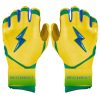HIGHEST QUALITY. MOST DURABLE BATTING GLOVE IN BASEBALL: Each pair of BRUCE BOLT batting gloves are handmade by skilled craftsmen using only the highest quality 0.9mm Cabretta leather and stitching techniques which makes our gloves buttery soft but more durable than any other glove on the market.