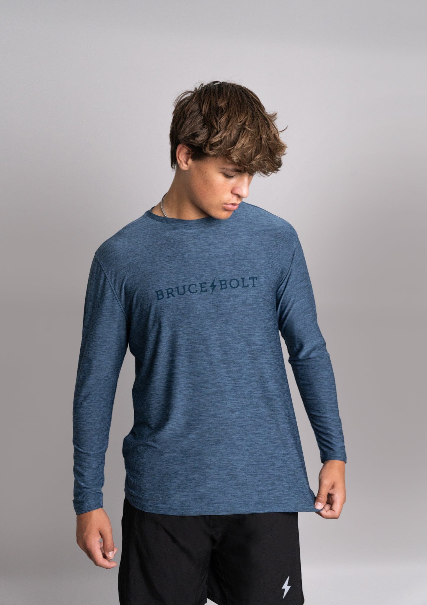 Our graphic tees are subtle with either a tonal BOLT logo or BRUCE BOLT wordmark on the chest and small 3D silicone BOLT on the back of the neck.